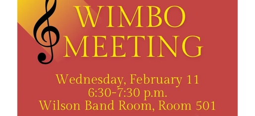 Hello Wilson Music Families! Save the date -- next Wednesday 2/11 is our February WIMBO meeting (6:30-7:30 pm, Room 501). Mrs. Ellis and Mr. Hamilton will share information about upcoming events and field trips, and we will start planning for the rest of the school year!